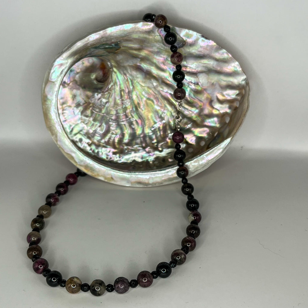 Faceted Black Tourmaline and and Round Agate Necklaces with Silver Clasp